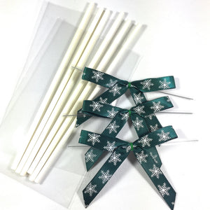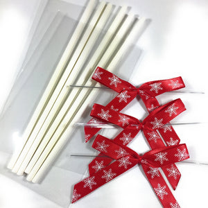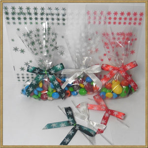 Snow flake 25pcs 4x6 cello bags + 25ps pre-tied ribbon bows for Christmas Party