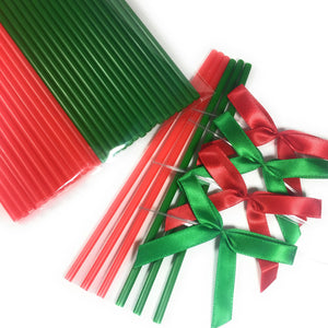 50pcs X (6 in. Red and Green Lollipop Sticks + Ribbon Bows) for Christmas Party