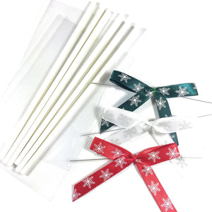 25pcs X (6 in. White Paper Lollipop Sticks + Snow White Ribbon Bows) for Christmas Party