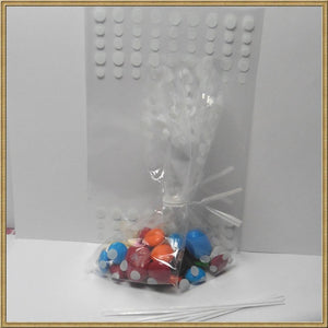 100pcs 4x 6 White polka dot cello bags + 100 matched twist ties