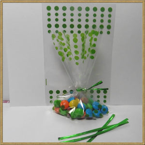 100pcs 4x 6 Green polka dot cello bags + 100 matched twist ties
