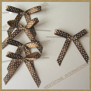 25 Polka Dot Brown Satin Pre-Tied Ribbon Bow for cello bag in wedding and Party