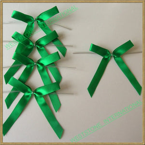 25 Solid Green Satin Pre-Tied Ribbon Bow for cello bag in wedding and Party