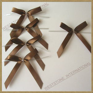 25 Solid Brown Satin Pre-Tied Ribbon Bow for cello bag in wedding and Party