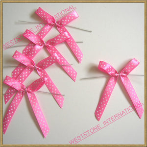25 Polka Dot Pink Satin Pre-Tied Ribbon Bow for cello bag in wedding and Party