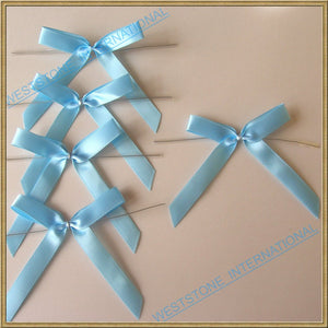 25 Solid Blue Satin Pre-Tied Ribbon Bow for cello bag in wedding and Party