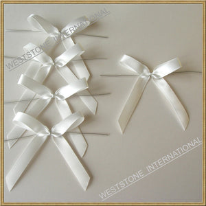 25 Solid White Satin Pre-Tied Ribbon Bow for cello bag in wedding and Party