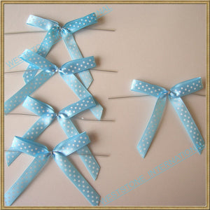 25 Polka Dot Blue Satin Pre-Tied Ribbon Bow for cello bag in wedding and Party