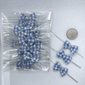25pcs Light Blue Gingham 3 mm x 2 mm Pre-Tied Ribbon Bows in wedding or birthday Party