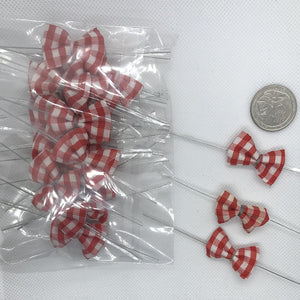 25pcs Red Gingham 3 mm x 2 mm Pre-Tied Ribbon Bows in wedding or birthday Party