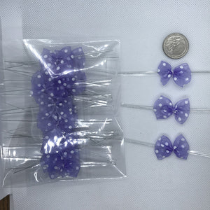 25pcs Purple Polka Dotted 3 mm x 2 mm Pre-Tied Ribbon Bows in wedding or birthday Party