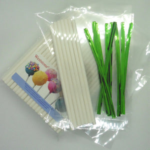 100pcs 6" Lollipop Stick, 100 pcs Poly Bag, 100pcs Green Twist Tie for cake pops in baby shower or party