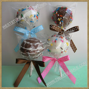 25pcs 6" Lollipop Stick, 25 pcs Poly Bag, 25pcs Pre tied ribbon bows for cake pops
